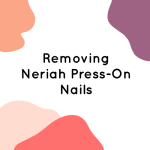 Taking off Neriah Press-on nails is just as simple as putting them on.1. In a bowl of warm water (do not use cold water) add some Neriah Mani Cuticle Oil to the bowl. 2. Soak your nails in the bowl for 5 – 10 minutes. The adhesive should weaken during the soaking making it very easy for the nails to...